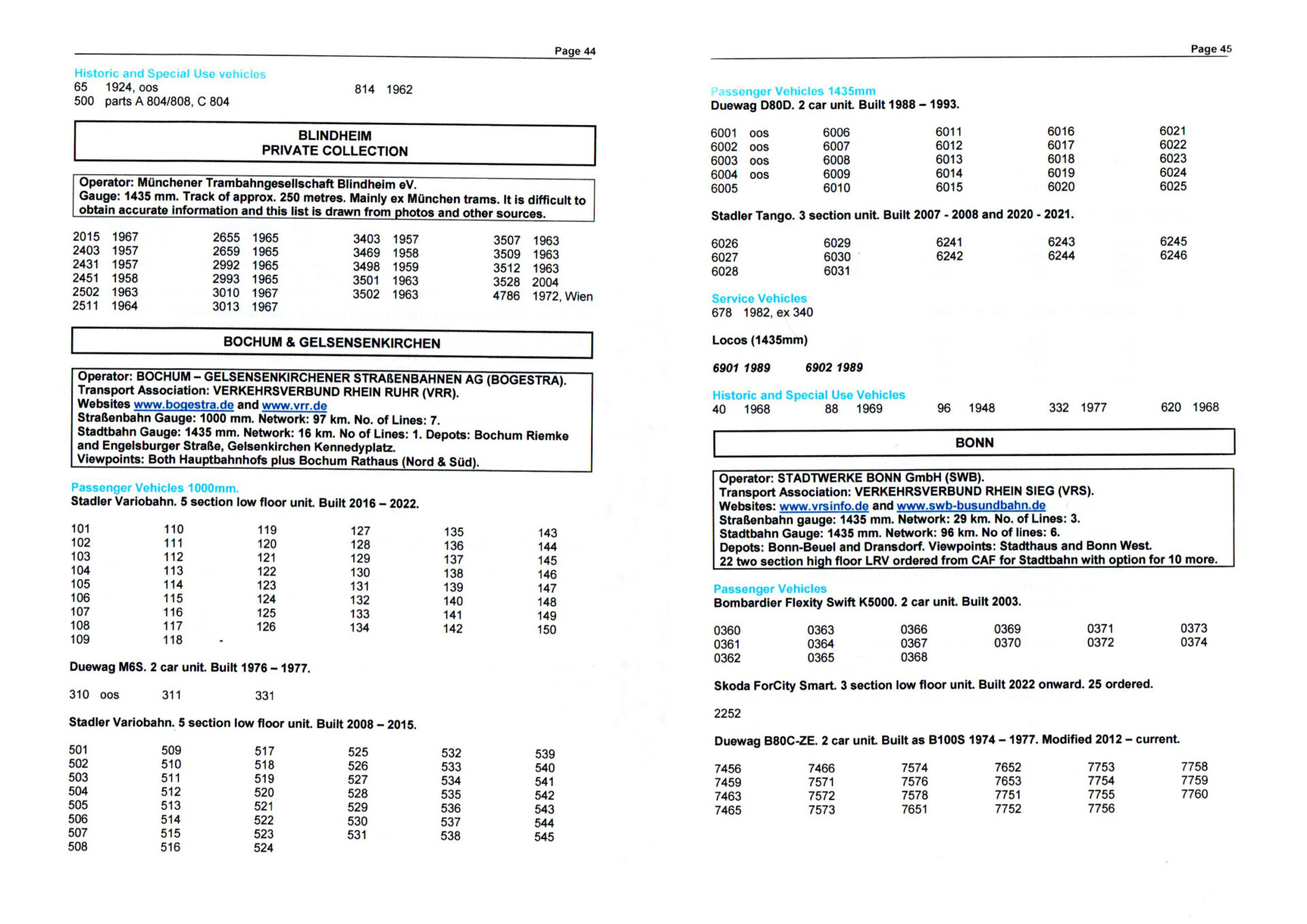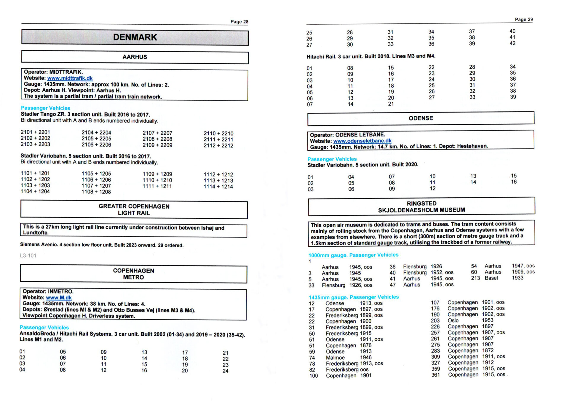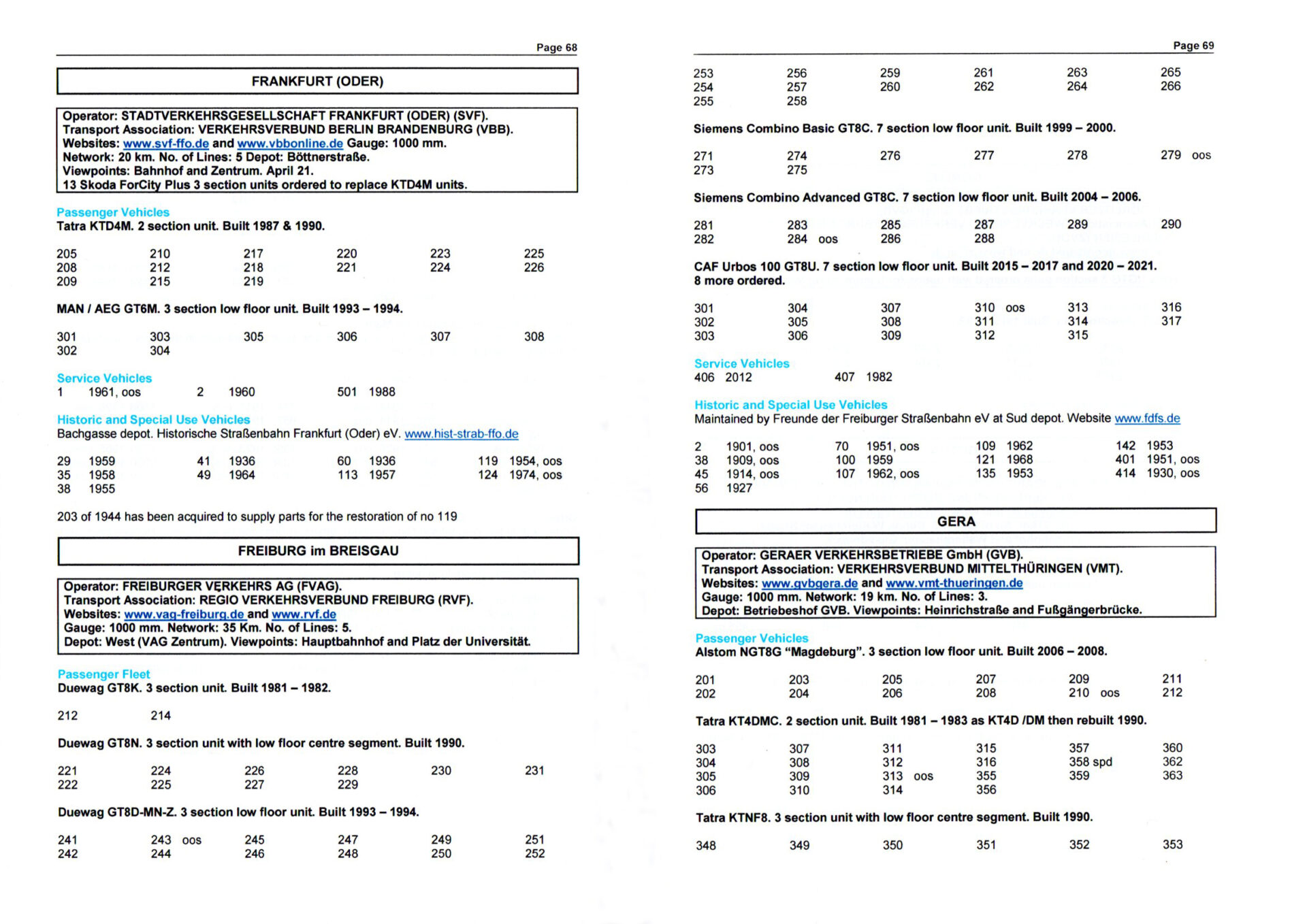 Now extended to include Denmark, Finland, Italy, Norway and Sweden, this is an updated guide to the fleets of all light rail and tram sytems operating in the countries of central Europe and Scandinavia. In addition to showing brief information of each undertaking in city-by-city order, the stock is listed in fleet order by type and builder with separate sub sections for service, historic and special service vehicles.