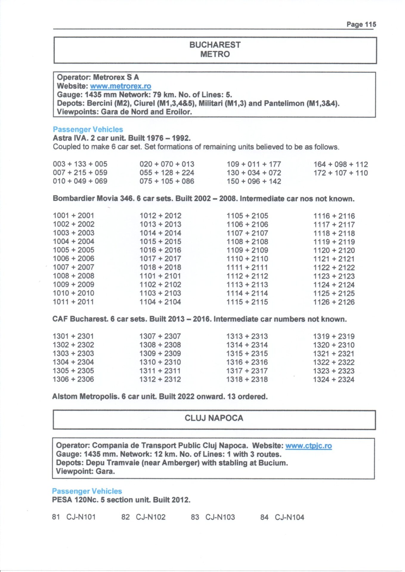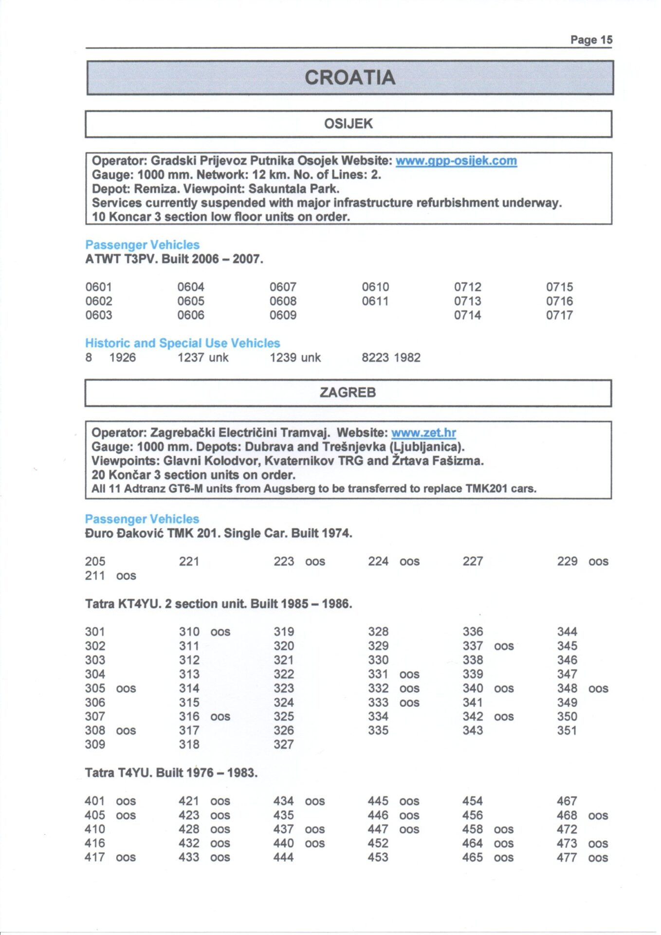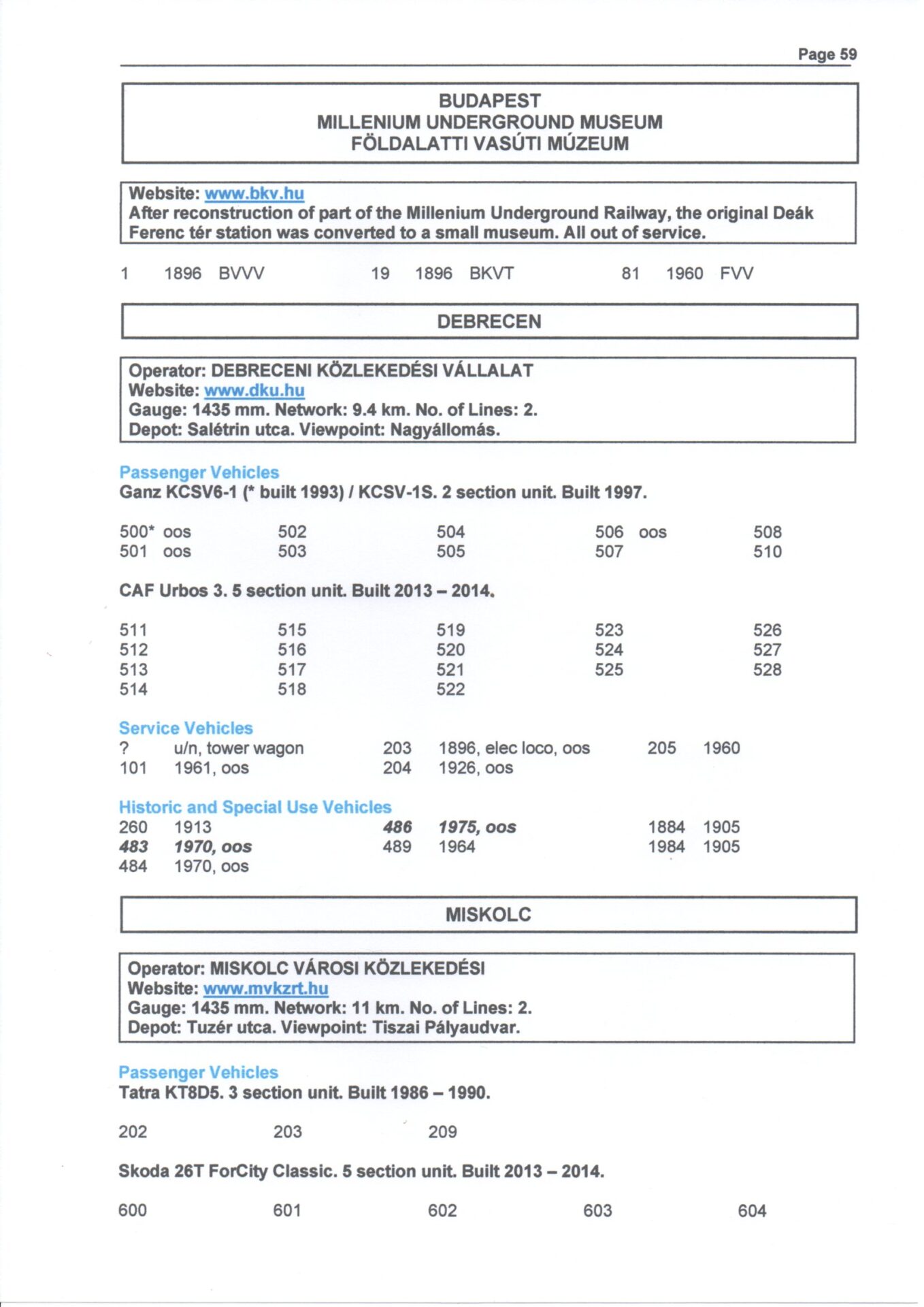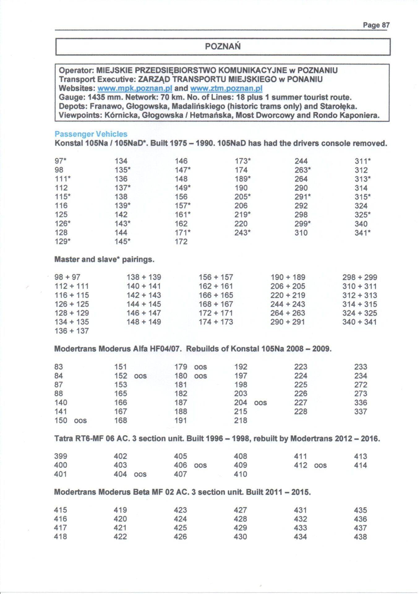 A comprehensive guide to the fleets of all light railway and tram networks operating in Bosnia & Herzegovina, Croatia, Czech Republic, Estonia, Hungary, Latvia, Poland, Romania, Serbia and Slovakia. In addition to showing brief information of each undertaking in city by city order, the stock is listed in fleet number order by type and builder with separate sub sections for works,historic and special use vehicles.